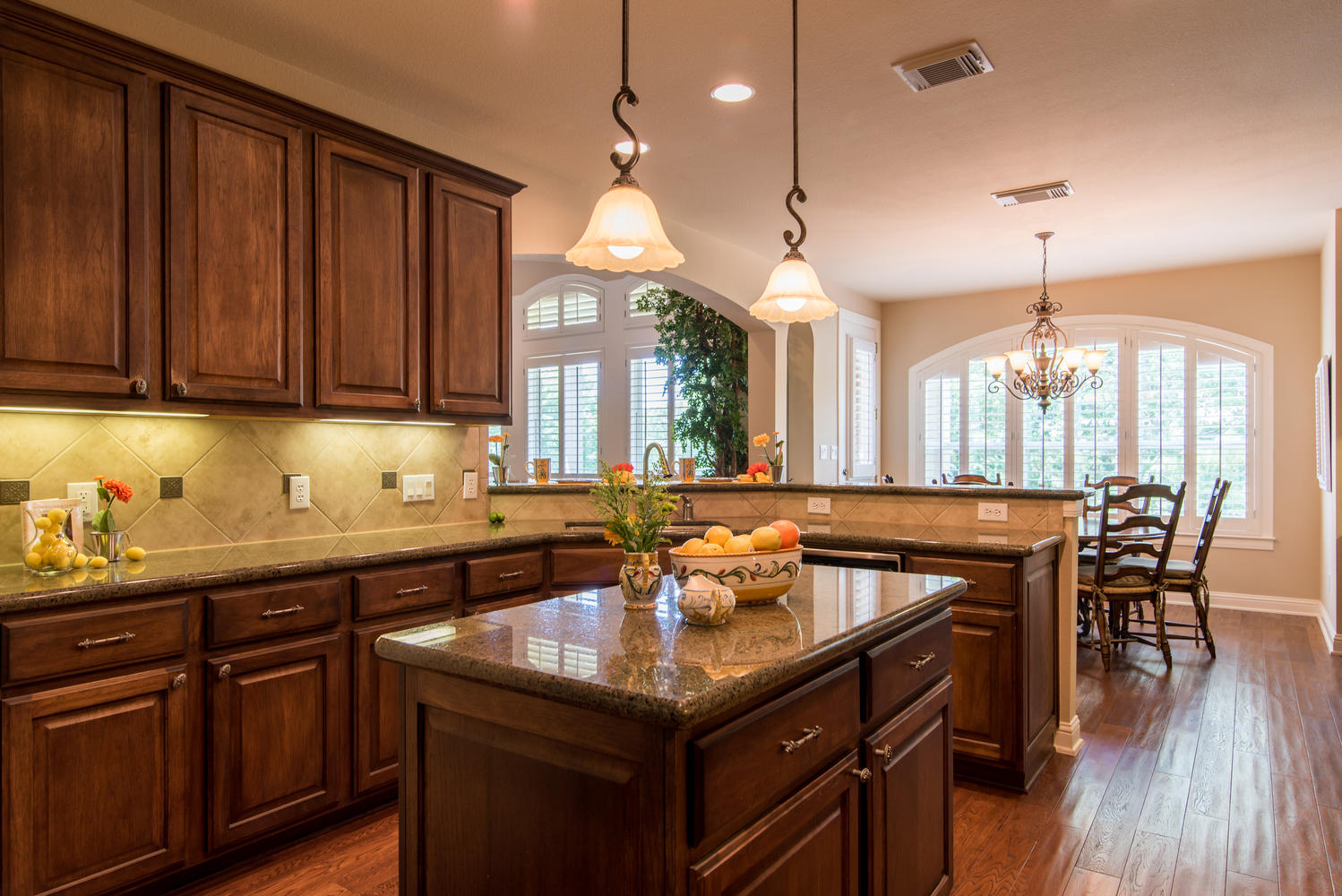 and granite counters - open to breakfast and family room, formal living and dining rooms, back porch and pool sized lot with outstanding shade trees.