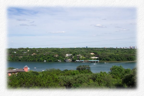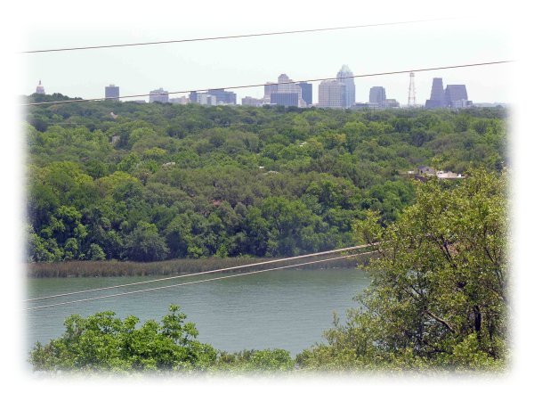from behind the capitol, the ducks glide down Lake Austin, the Town