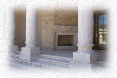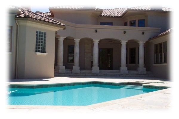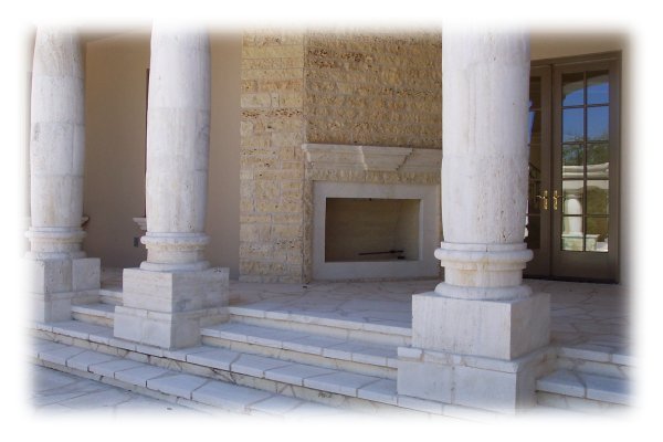 outside to the stone terrace, covered porch with outdoor fireplace and Tuscan