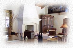 floor to ceiling stone fireplace and wood floors. The spacious and private