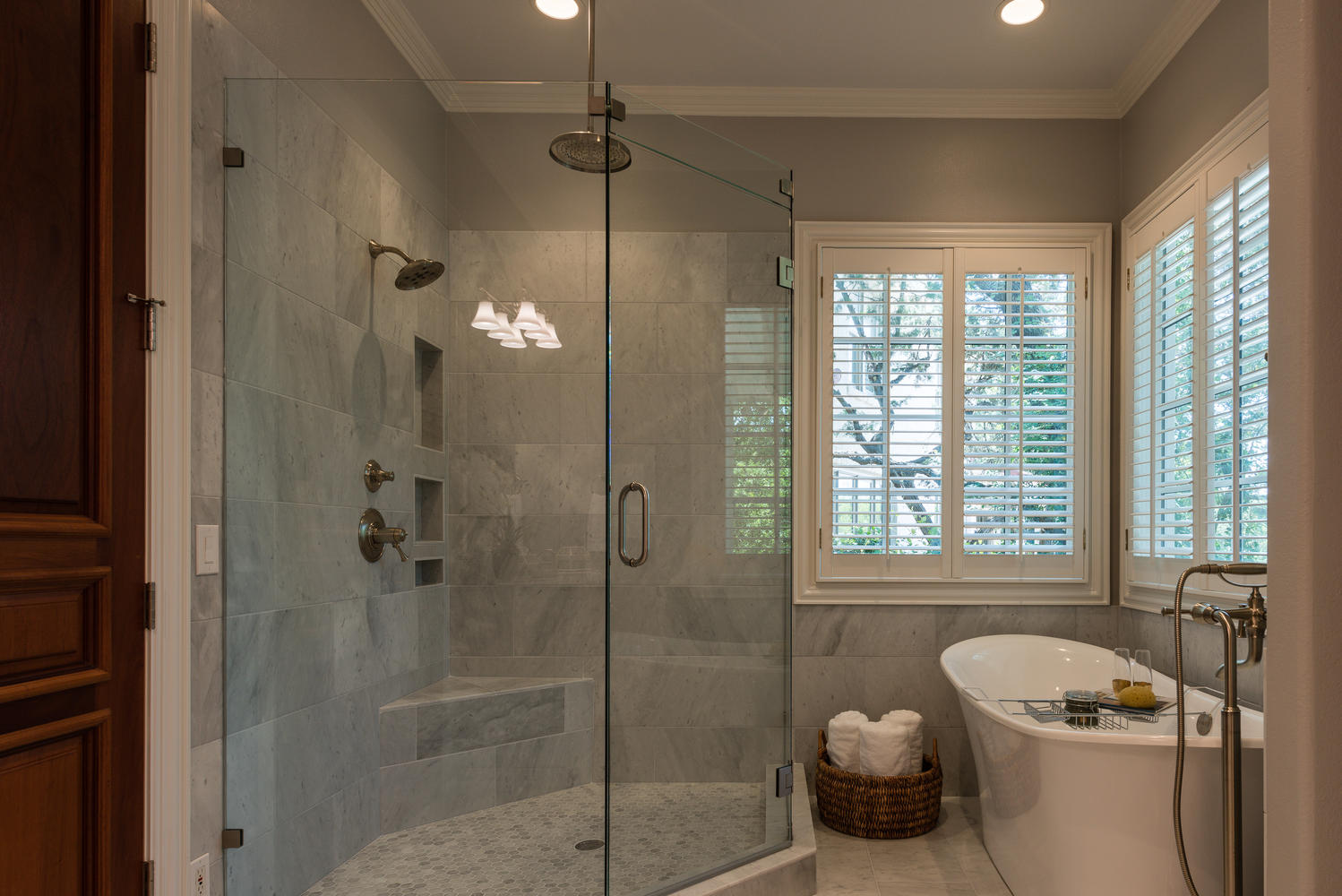 Main level master suite perfectly finished with luxury modern design bath and walk in closets
