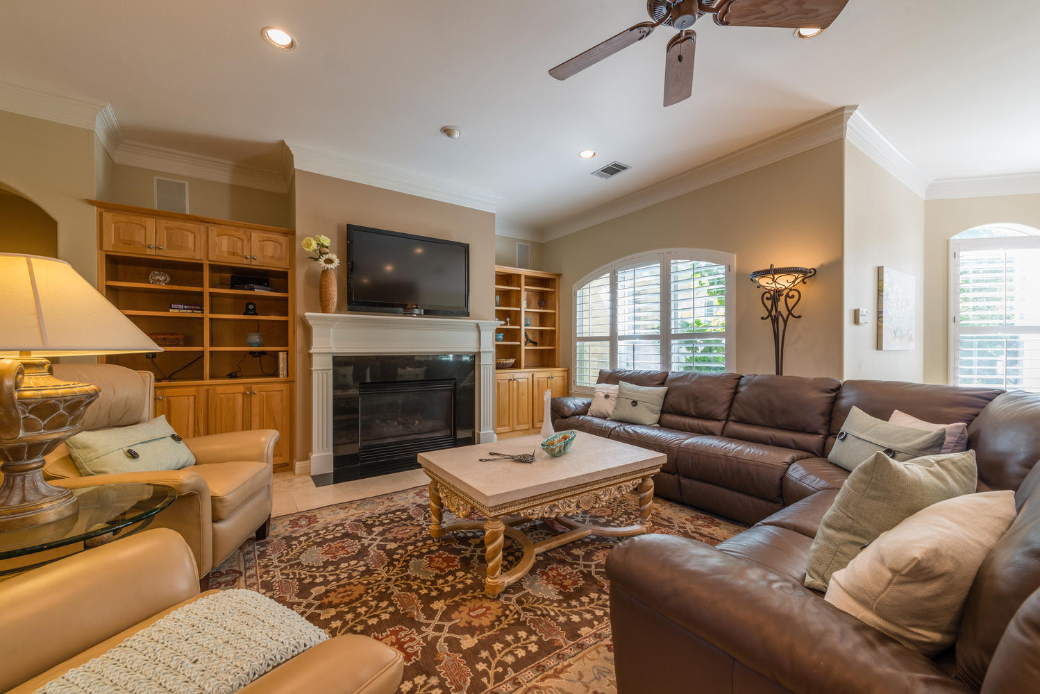 - Fireplaces in formal living, family room and master suite