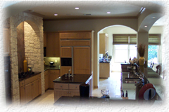 floor plan with high ceilings, deep crown moldings, gourmet kitchen