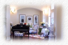 living - cheery wood floors - 14 and 17 foot ceilings - outdoor covered porch