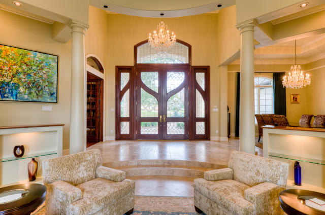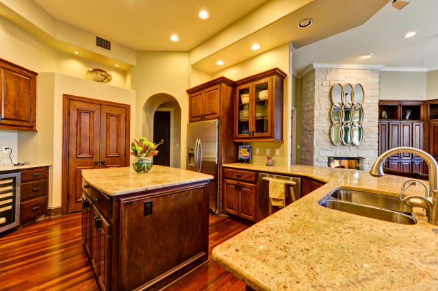 This luxury, one-story home backs to the greenbelt and offers serene privacy. The open floor plan features a dramatic entry foyer, luxury master suite, spacious study with built-ins, gourmet kitchen open to family room and breakfast rooms, large game/media room with wet bar, formal living and dining, cherry wood and stone floors, high coffered ceilings and more!