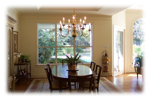 with high coffered ceilings – walls of windows - formal living & dining