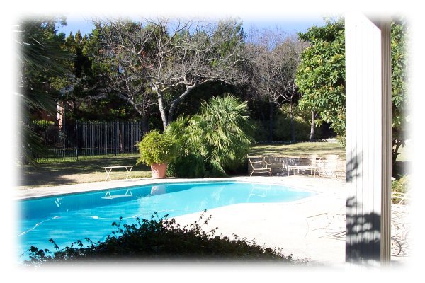 windows offering the view of the pool nestled in the beautifully
