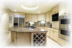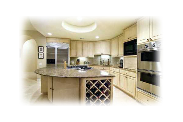 counters. The kitchen is open to the family room with stone