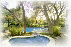 outdoor porch, open garden terrace and pool and spa. The gourmet