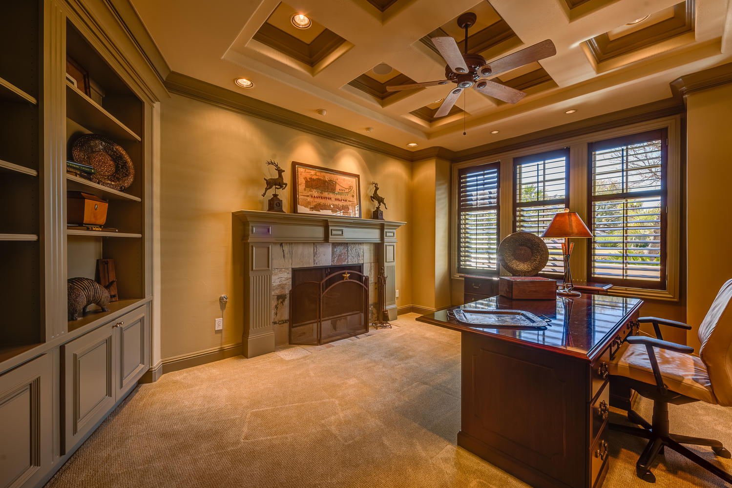 the outdoors, luxury bath, his and her closets, built in cabinetry, stone fireplace and sitting area. The main level also offers a private study with built-ins and