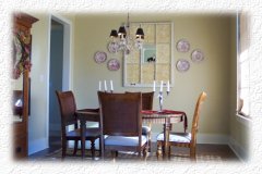 travertine baths, furniture-style custom cabinetry, formal dining room,