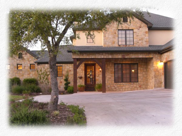 hickory/pecan wood and stone floors,