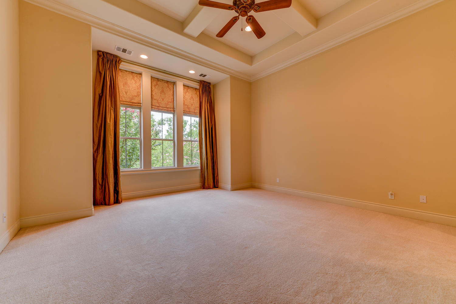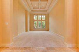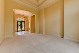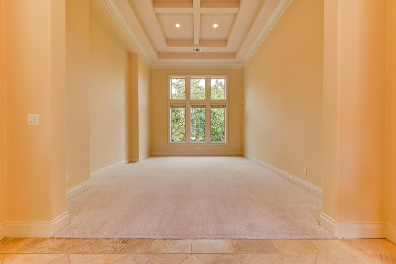 Dramatic open formal living rooms with high coffered ceilings