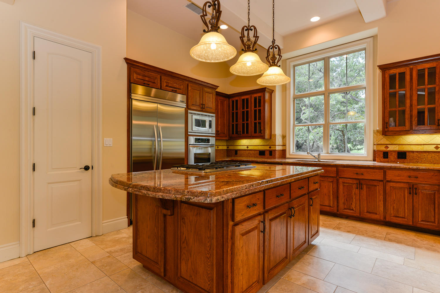 Gourmet kitchen open to breakfast area and family room and offers granite, stainless appliances, oversized center island with breakfast bar